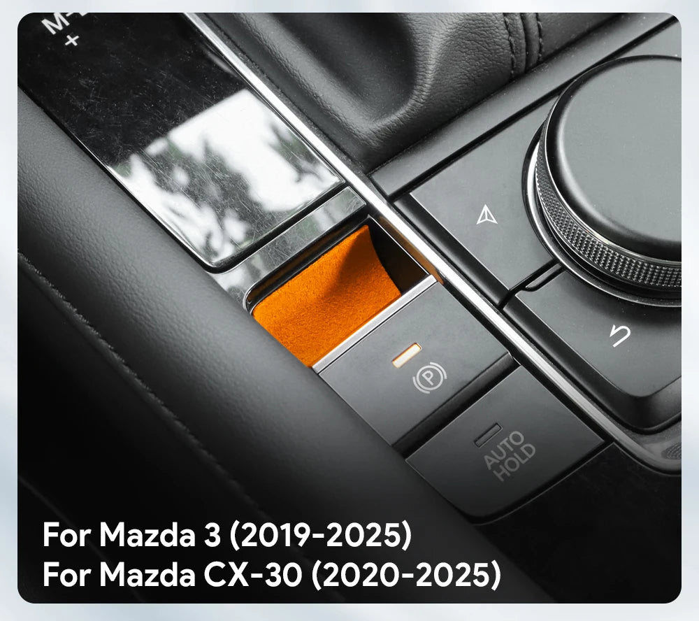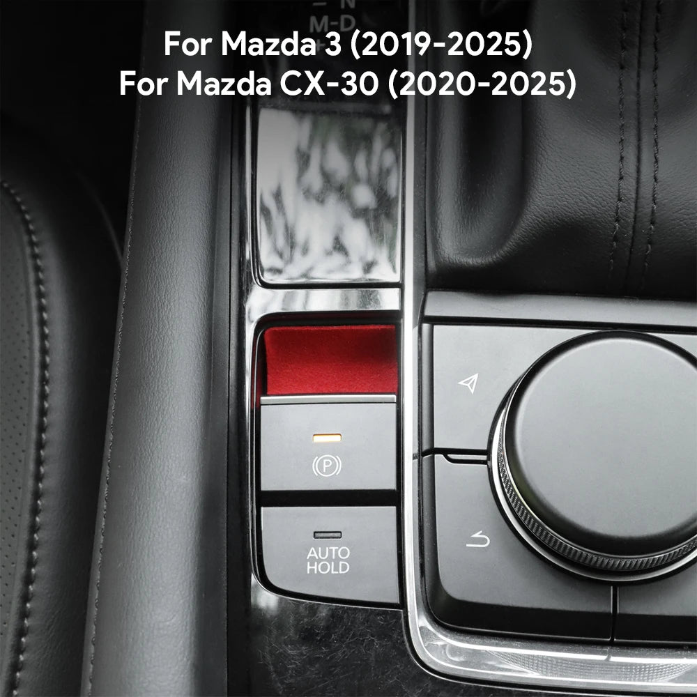 Apportez une touche haut de gamme à l’intérieur de votre Mazda avec cette protection de garniture en suédine pour frein électronique. Conçu sur mesure en 1:1 pour Mazda 3 Compact et Berline (BP et Sedan) 4ᵉ génération 2019 - 2025 et CX-30 2019-2025, il s’adapte parfaitement à la console centrale, sans modification.