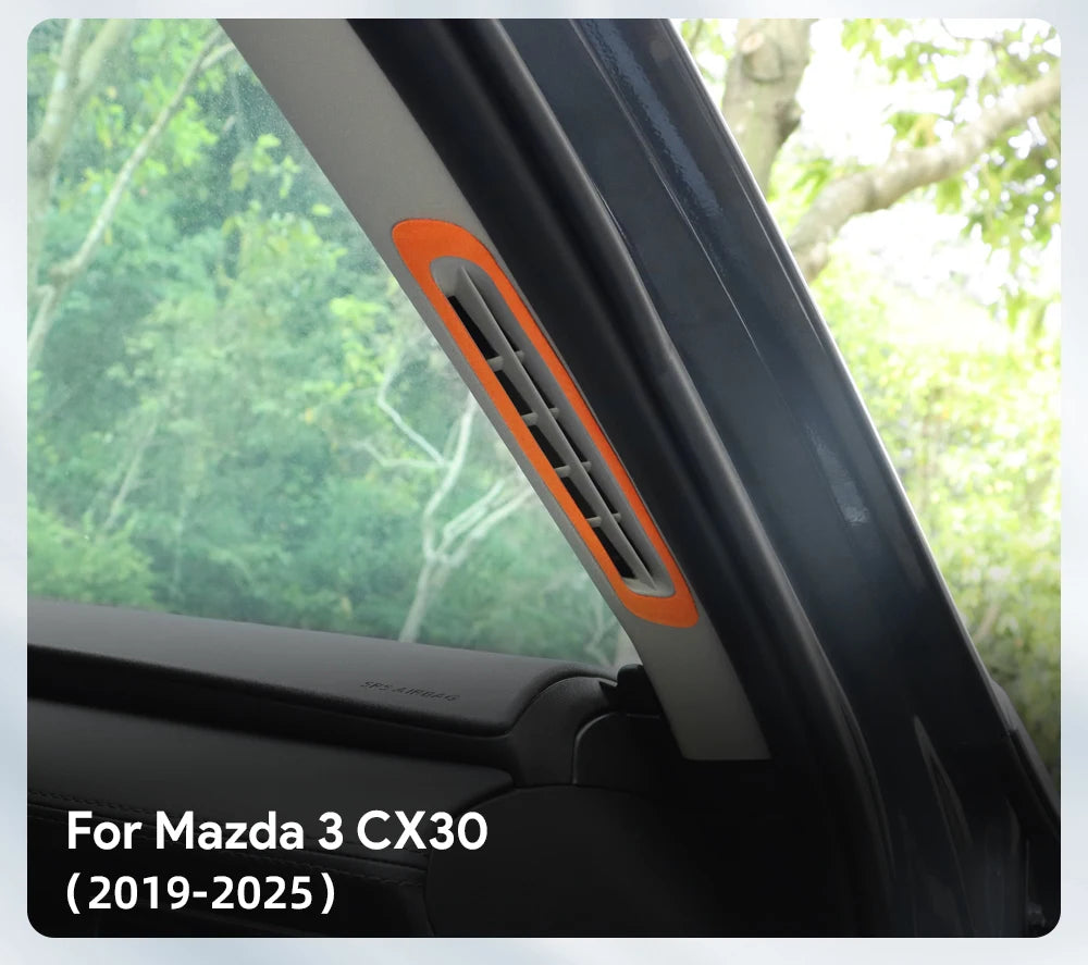 Apportez une touche de luxe et d’élégance à l’intérieur de votre Mazda 3 ou CX-30 avec ce kit de 2 garnitures en suédine pour sortie d’air de montant. Conçues en suédine de haute qualité, elles offrent une texture douce et raffinée tout en s’intégrant parfaitement à l’habitacle grâce à un ajustement précis 1:1 avec le modèle d’origine. Disponible en plusieurs coloris (noir, rouge, orange), ce set rehausse instantanément l’esthétique de votre intérieur.